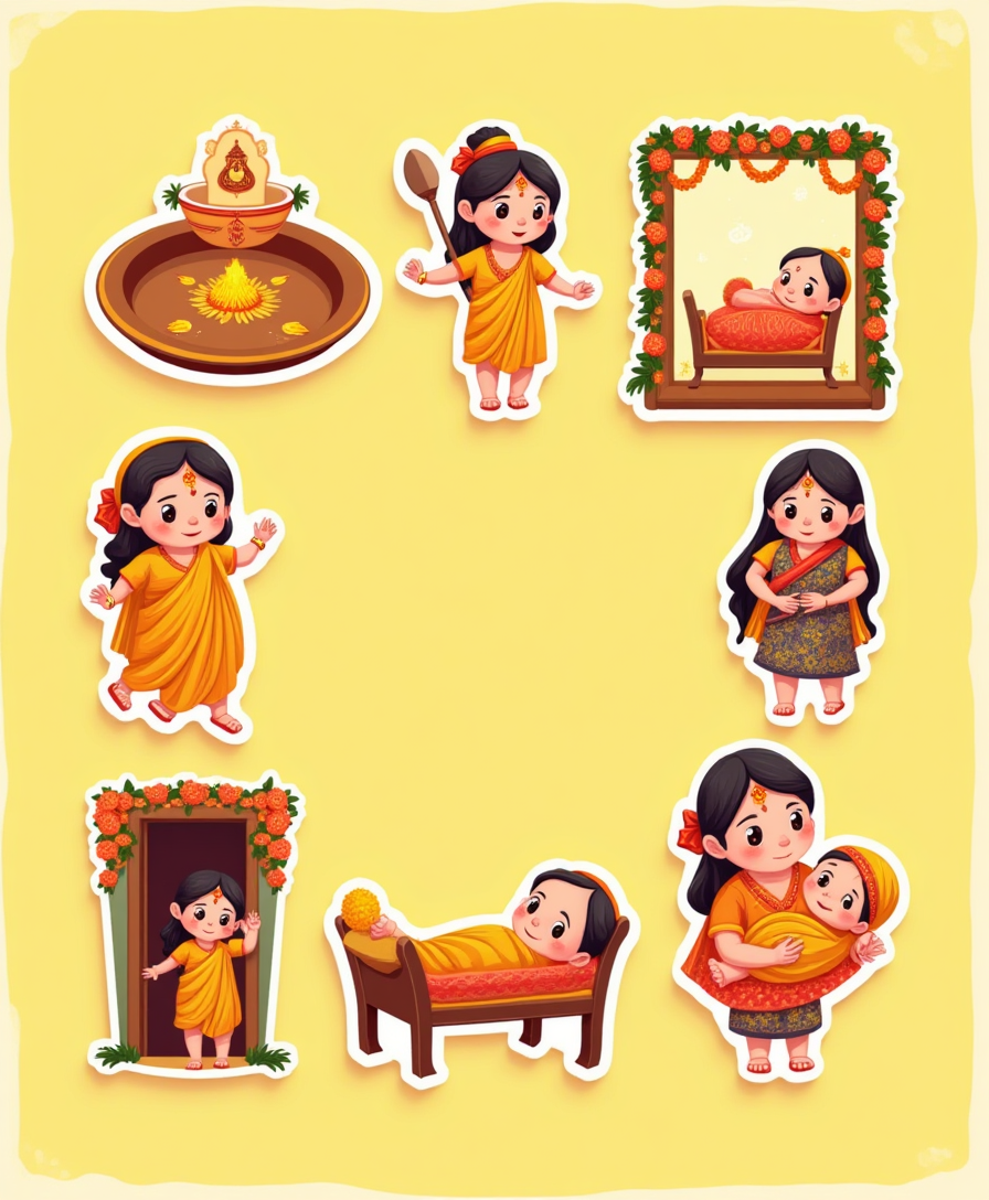 A charming collection of baby-related stickers, perfect for baby showers or welcoming a newborn. Includes cribs, tiny socks, pastel balloons, gifts, and more — designed to add joy to your celebrations.
