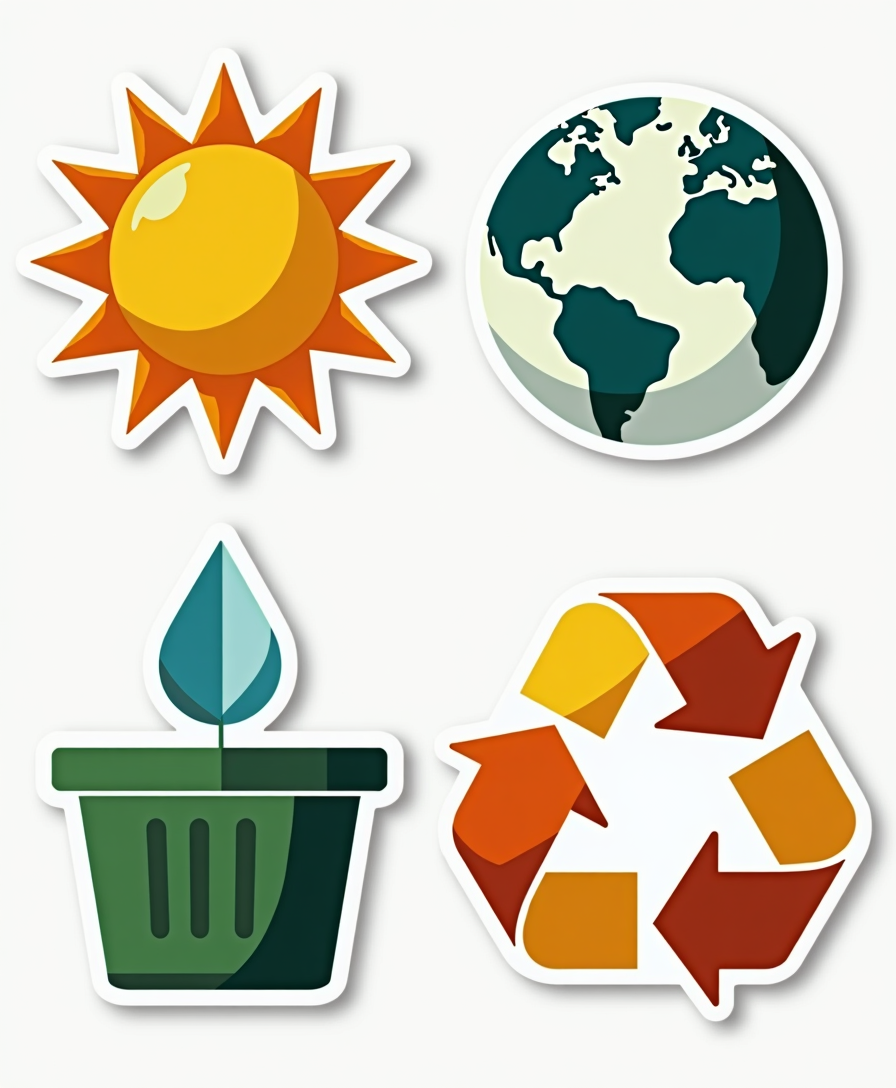 ✨ From recycling bins and solar panels to eco-bags, bicycles, reusable bottles, and green earth icons, every design has been thoughtfully crafted in multiple art styles. Great for environmentalists, students, businesses promoting sustainability, or anyone who wants to live a more mindful lifestyle.