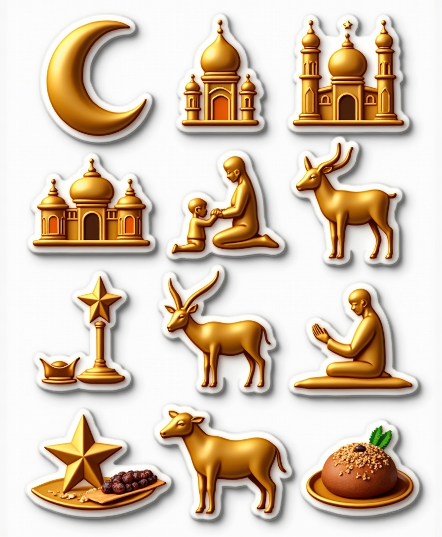 ? Eid Mubarak – Crescent moons, mosques, lanterns, iftar feasts, and gift boxes