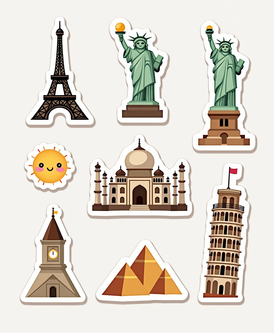 πŸ›οΈ Global Landmarks Stickers – Iconic monuments and wonders of the world, beautifully illustrated in unique styles. Perfect for travel lovers, planners, and collectors. 🌍