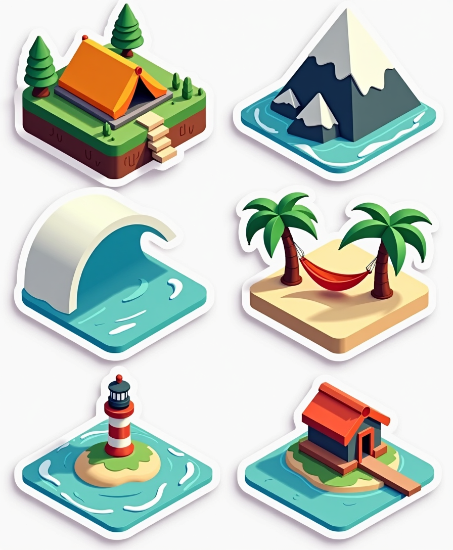 • 🎒 Adventure & Relaxation – From hiking backpacks to cozy beach umbrellas, you’ll find stickers for every vibe.