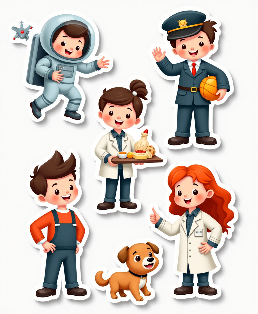 Vibrant and inspiring stickers representing professions across industries – from doctors and teachers to pilots, chefs, artists, and more. Perfect for planners, kids’ learning, and creative storytelling.