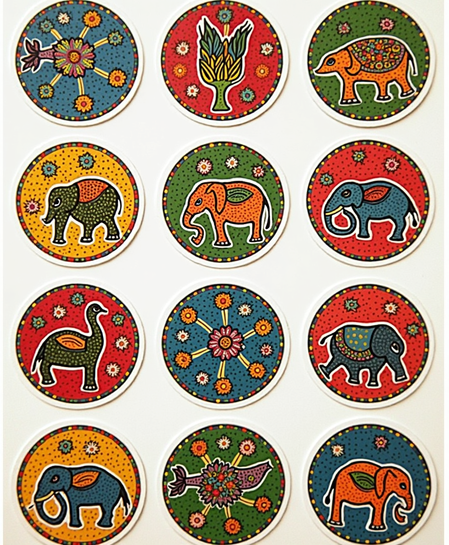 Celebrate India’s diversity with regional art and symbolic motifs turned into stickers—perfect for learning, decor, or cultural pride.