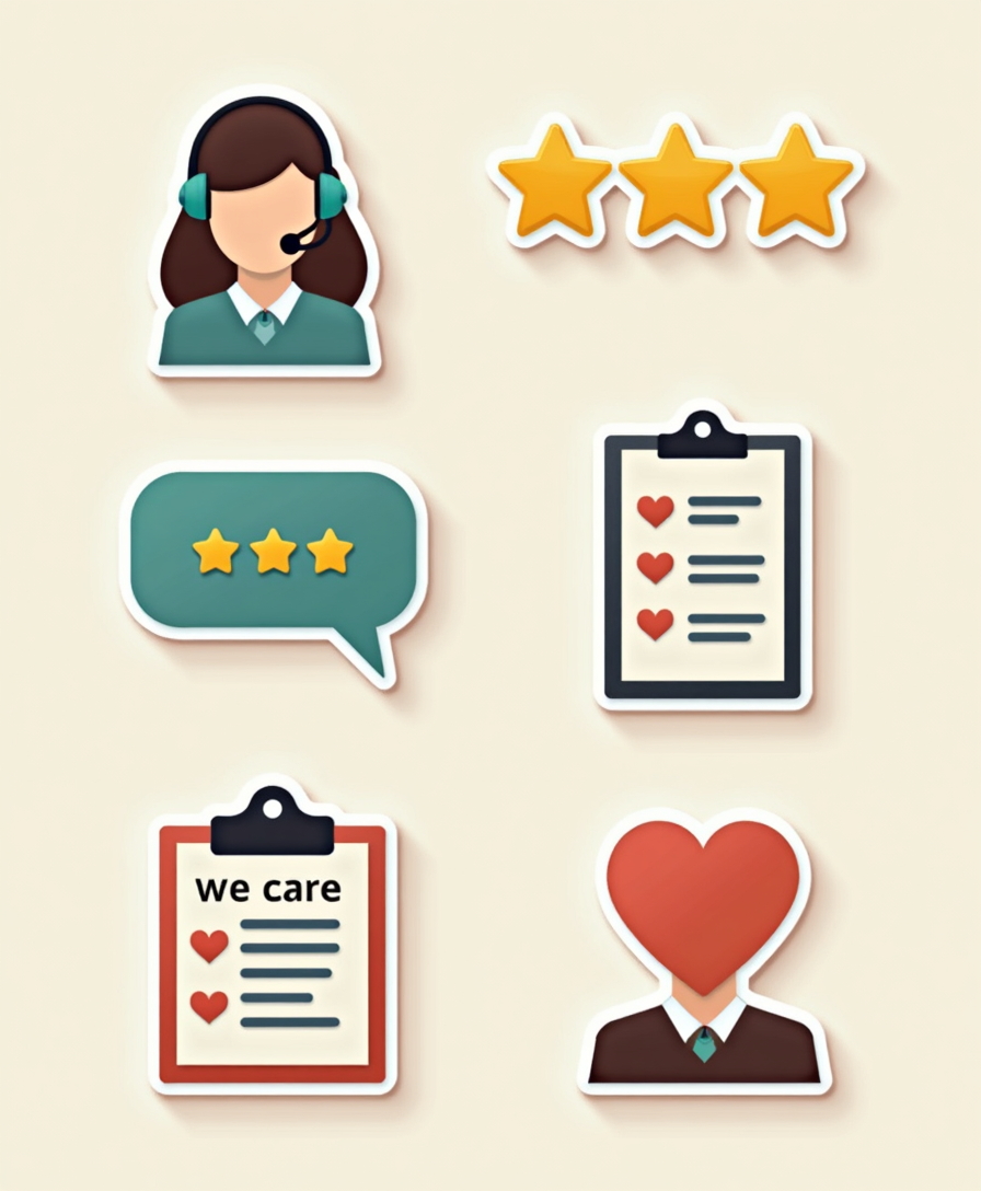 • 📦 Delivery & Returns – shipping boxes, courier vans, and return icons.