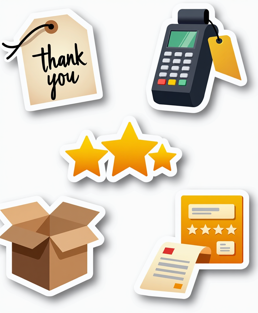• 📦 Delivery & Returns – shipping boxes, courier vans, and return icons.