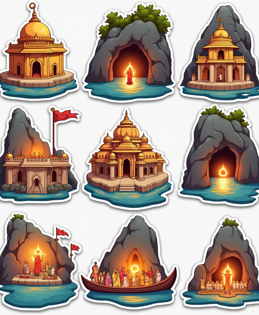 Sacred stickers featuring famous temples, shrines, and holy landmarks of India. Perfect for spiritual journeys, devotion journals, or cultural collections.