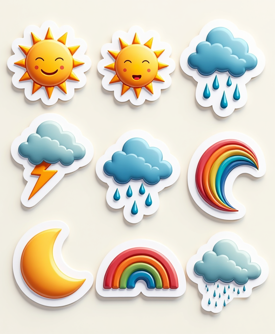 ☀️ Weather Icons Stickers bring everyday skies into your notebooks, planners, and bullet journals. Whether it’s a sunny forecast, a 🌧️ rainy day, or a 🌈 rainbow surprise, these stickers help you track moods, schedules, or events with flair.