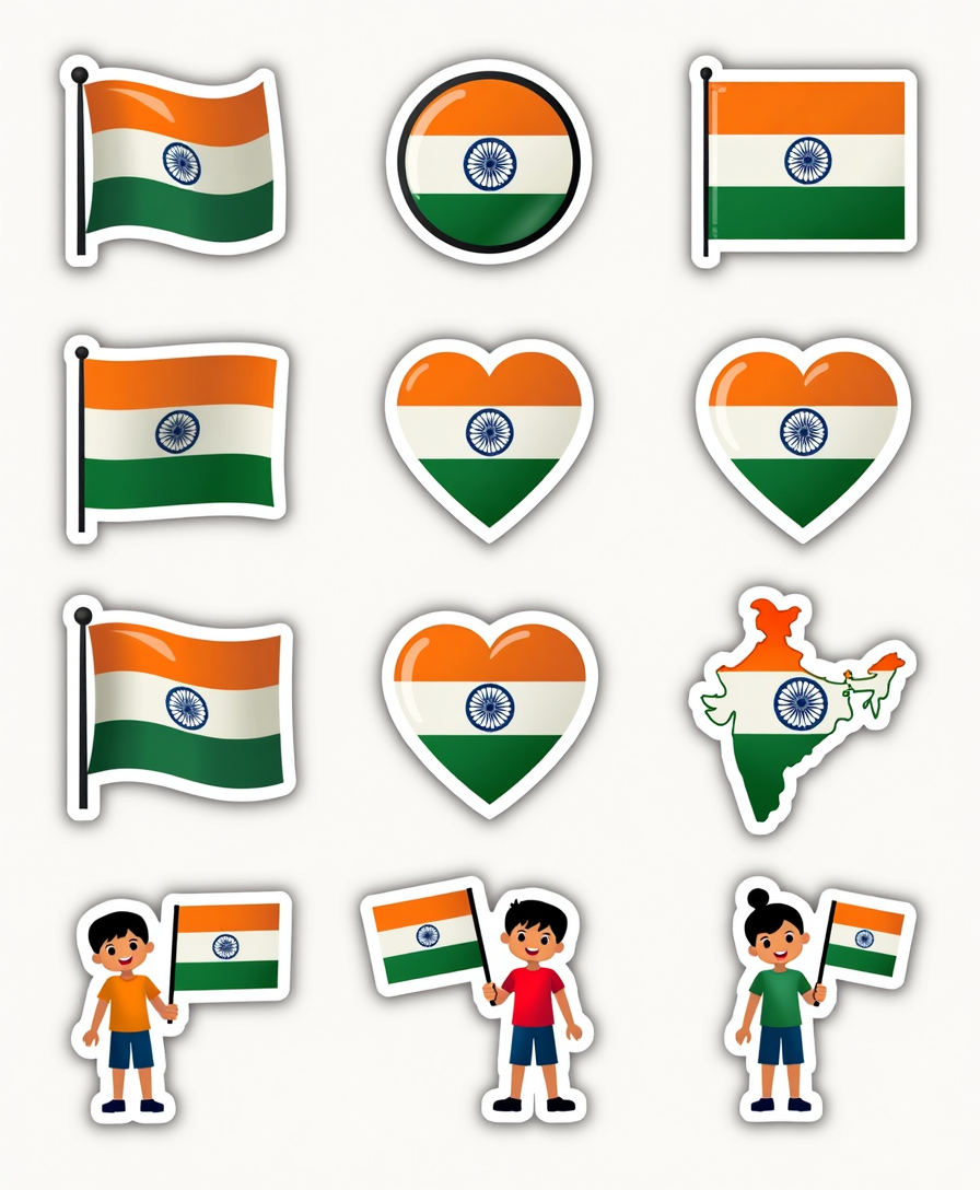 Celebrate India’s spirit with vibrant sticker designs perfect for 15th August and beyond. Great for notebooks, laptops, bottles, and more.