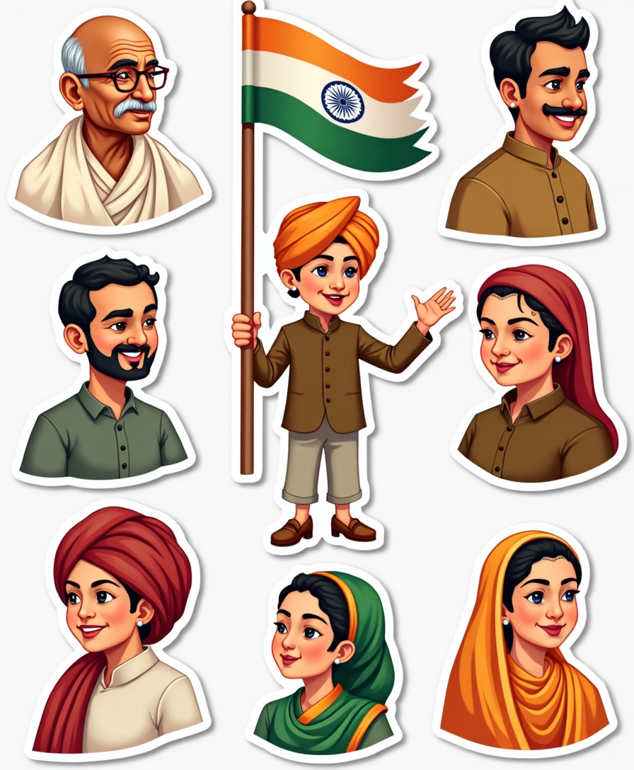 Celebrate India’s spirit with vibrant sticker designs perfect for 15th August and beyond. Great for notebooks, laptops, bottles, and more.