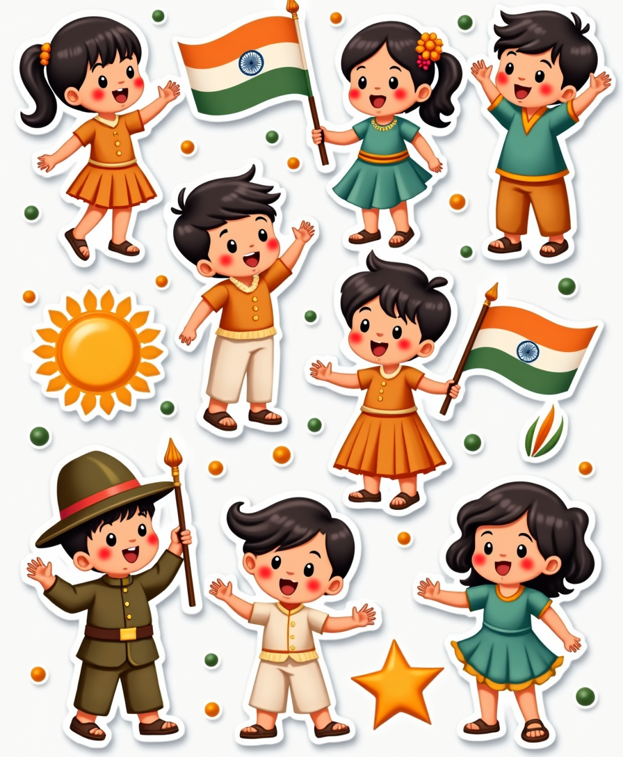 Celebrate India’s spirit with vibrant sticker designs perfect for 15th August and beyond. Great for notebooks, laptops, bottles, and more.
