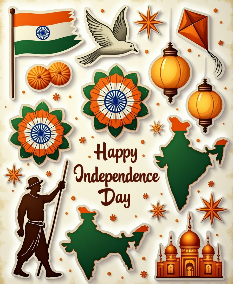 Celebrate India’s spirit with vibrant sticker designs perfect for 15th August and beyond. Great for notebooks, laptops, bottles, and more.