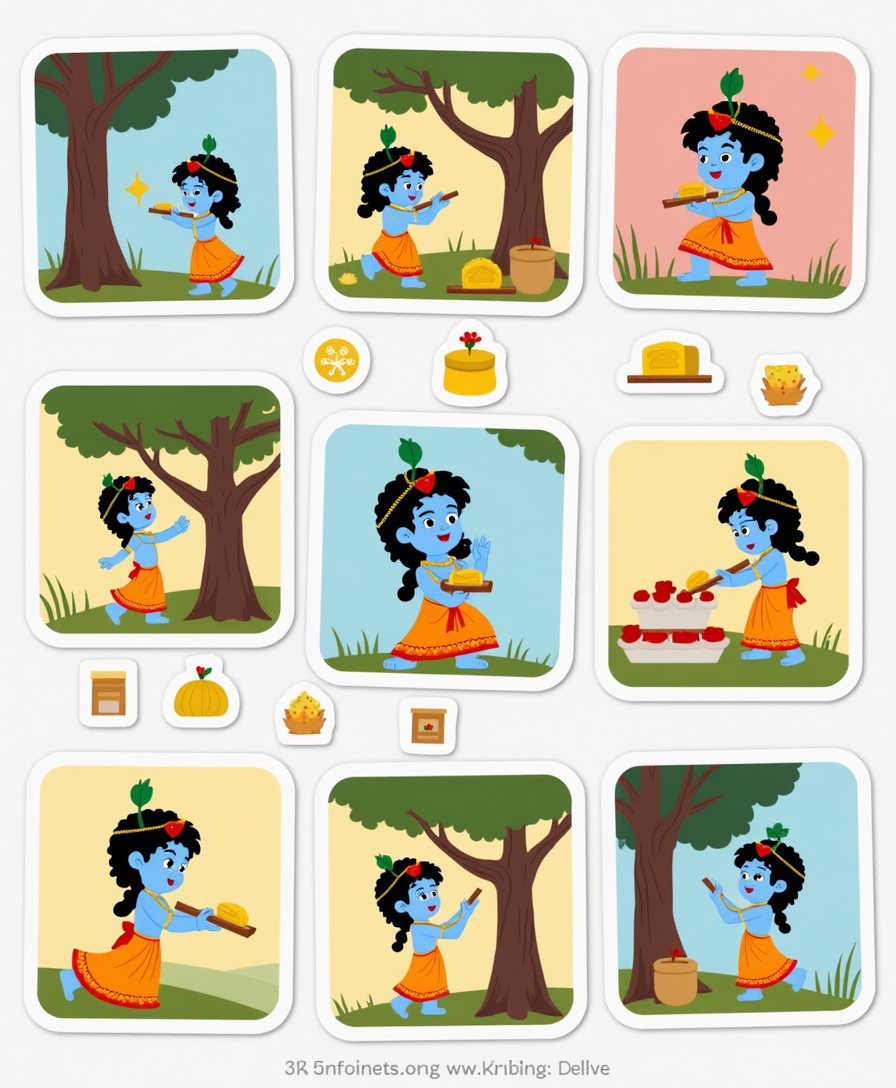 Krishna Janmashtami – Devotional Sticker Card Sheet v7