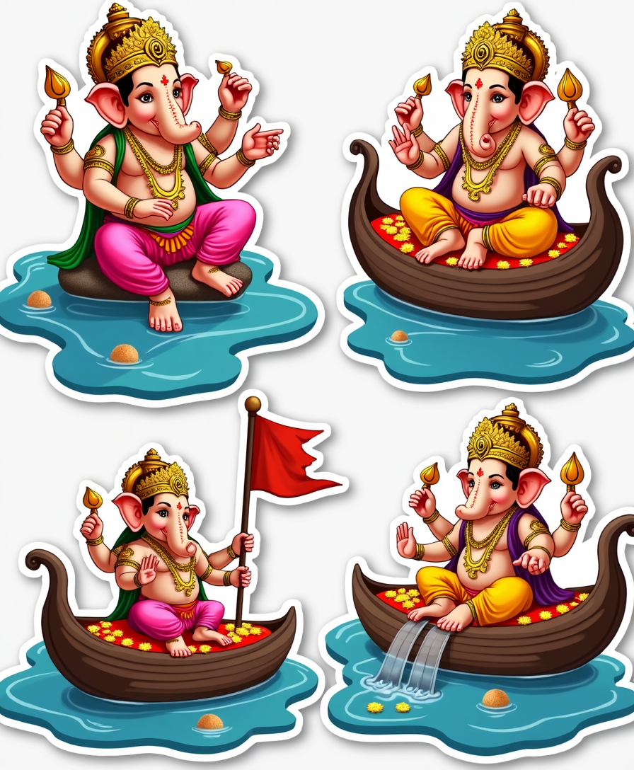 Celebrate Ganesh Chaturthi with this festive sticker sheet featuring artistic depictions of Lord Ganesha, modaks, and vibrant Indian elements. Perfect for journaling, gift decor, scrapbooks, or festive crafts.