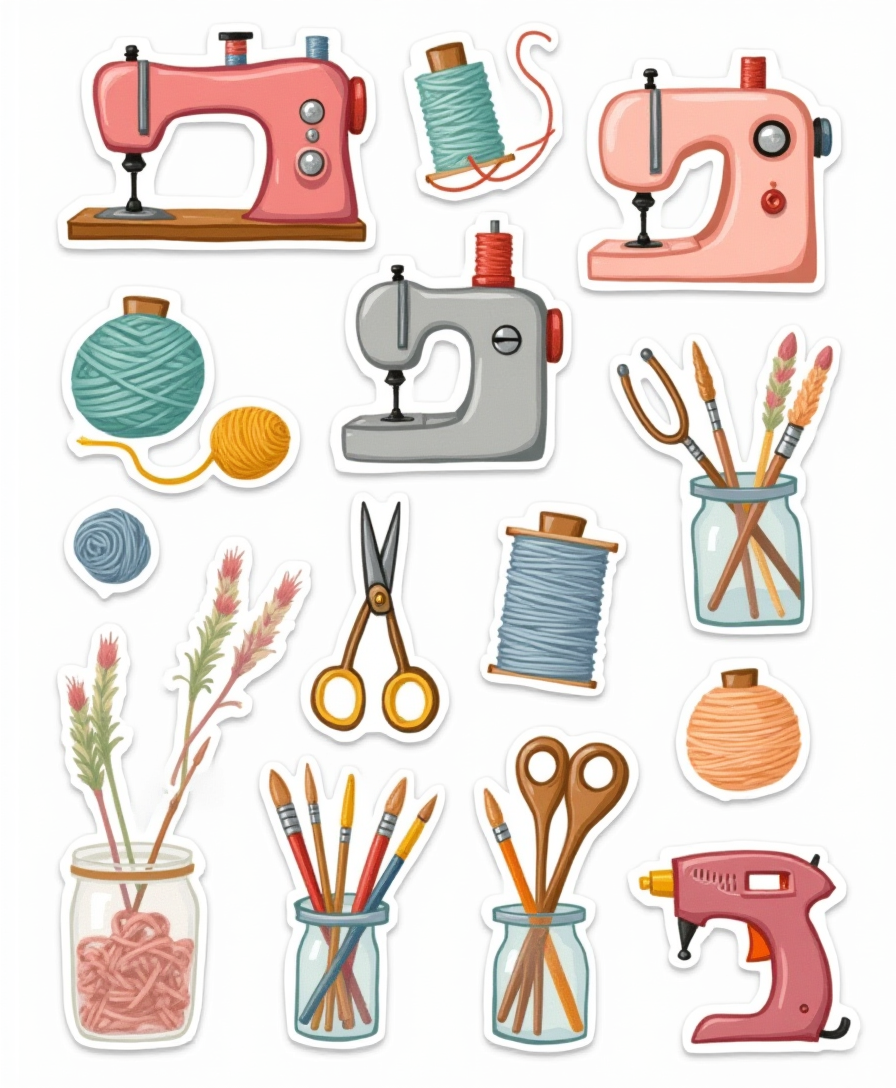 Unleash your creativity with our DIY & Crafts Sticker Pack! Perfect for planners, journals, and scrapbooks, these waterproof stickers feature sewing, painting, knitting, and crafting icons in playful styles.