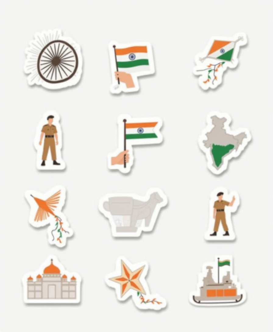 Show your patriotism with vibrant Republic Day stickers, perfect for decorations, scrapbooks, and celebrations.