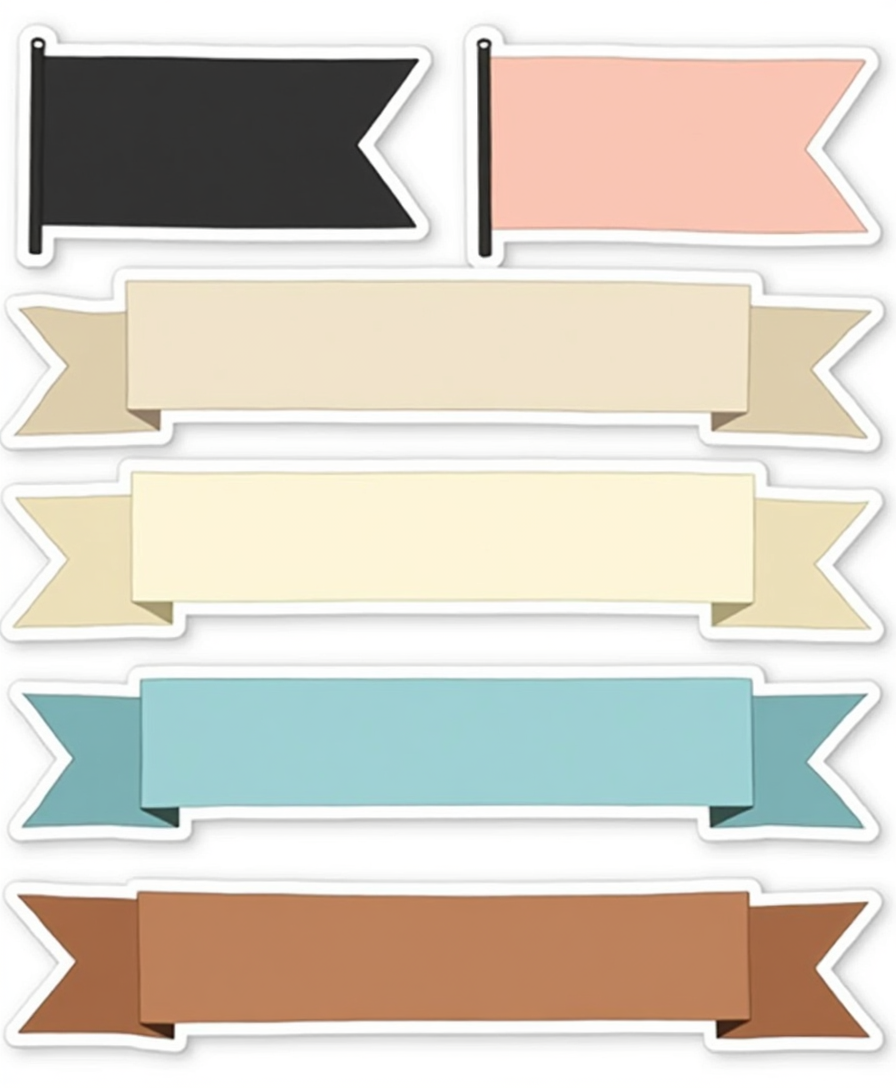 Practical and versatile stickers featuring geometric shapes, arrows, labels, frames, and markers — perfect for planners, journals, or daily organization.