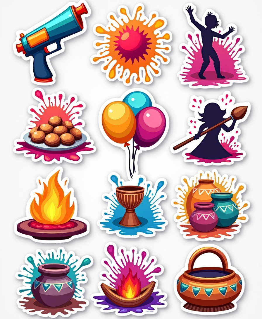 Celebrate the joy of Indian festivals with vibrant sticker designs featuring lamps, colors, sweets, and traditions from every corner of India.