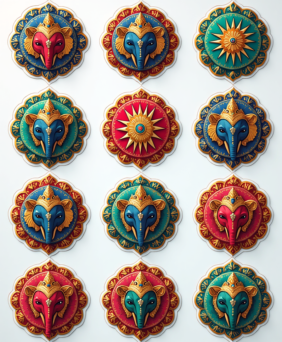 A vibrant collection of mandala and rangoli-inspired stickers, perfect for decorating journals, planners, scrapbooks, and festive crafts.