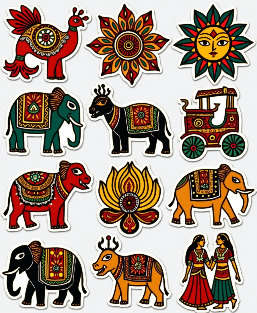 Celebrate India’s diversity with regional art and symbolic motifs turned into stickers—perfect for learning, decor, or cultural pride.