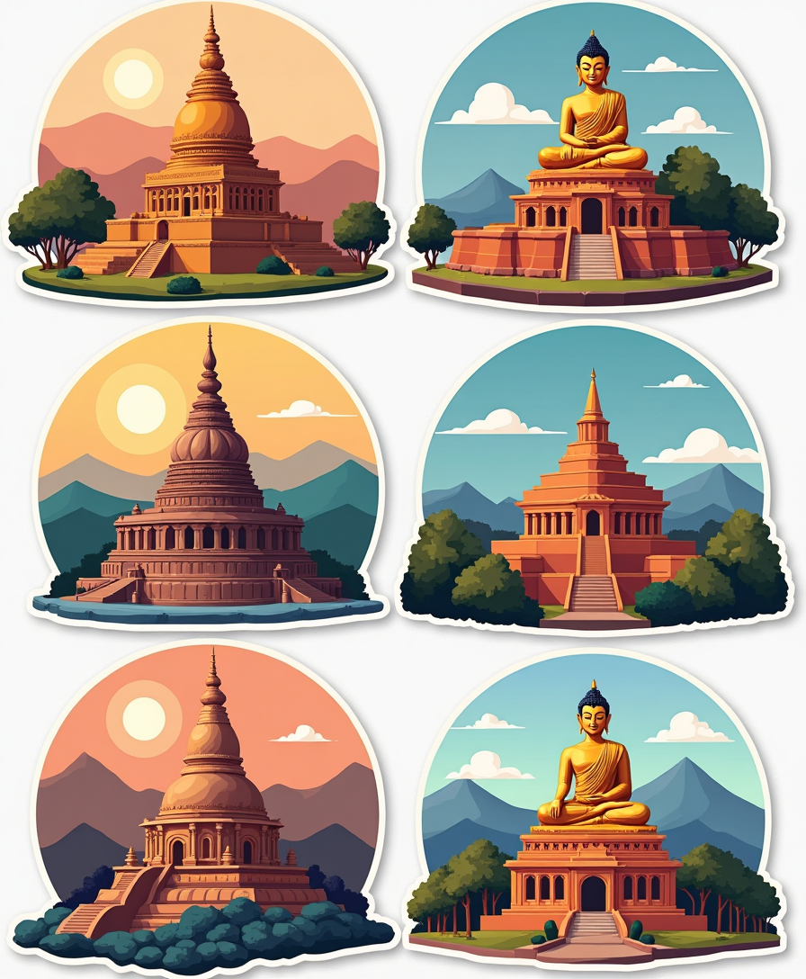 Sacred stickers featuring famous temples, shrines, and holy landmarks of India. Perfect for spiritual journeys, devotion journals, or cultural collections.