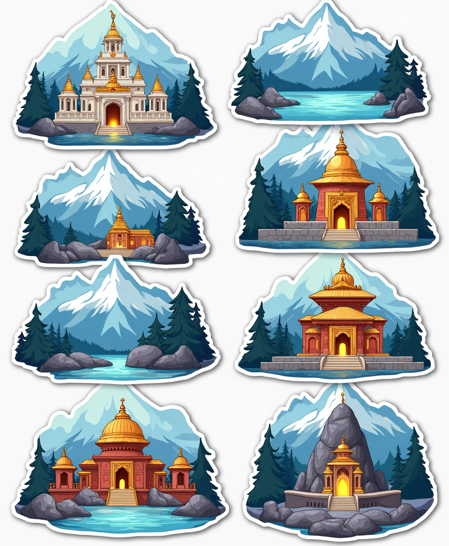 Sacred stickers featuring famous temples, shrines, and holy landmarks of India. Perfect for spiritual journeys, devotion journals, or cultural collections.
