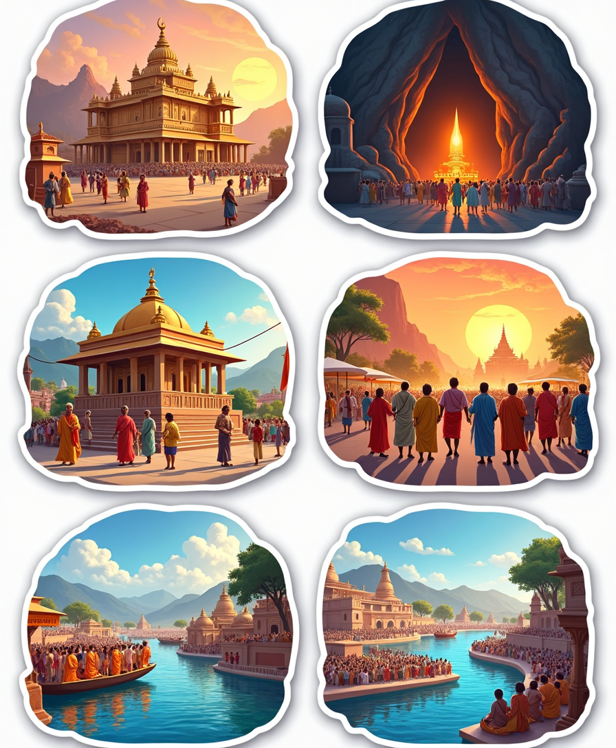 Sacred stickers featuring famous temples, shrines, and holy landmarks of India. Perfect for spiritual journeys, devotion journals, or cultural collections.