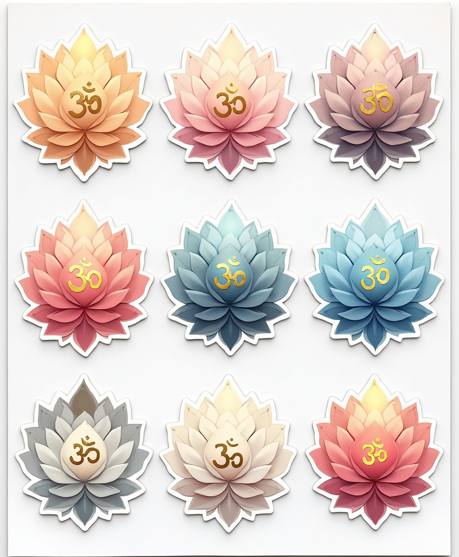 A mindful collection of yoga poses, mudras, chakras, and sacred symbols designed as vibrant stickers to inspire inner peace and balance.