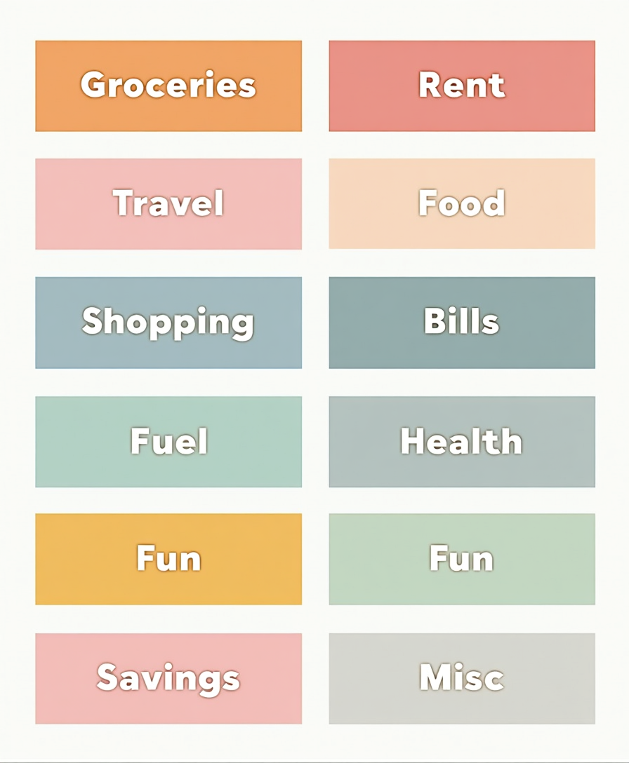 Functional finance stickers for planners: bills, paydays, savings goals, expense icons, no-spend challenges, and more—clean layouts, bold lines, cut-friendly borders.