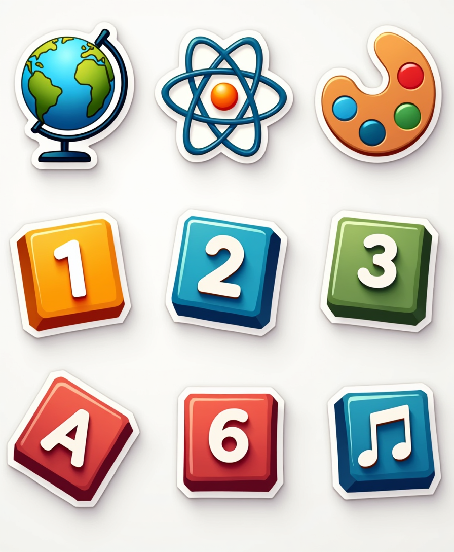 Educational and learning-themed stickers featuring books, pencils, school icons, graduation hats, and motivational study quotes — perfect for kids, students, and planners.