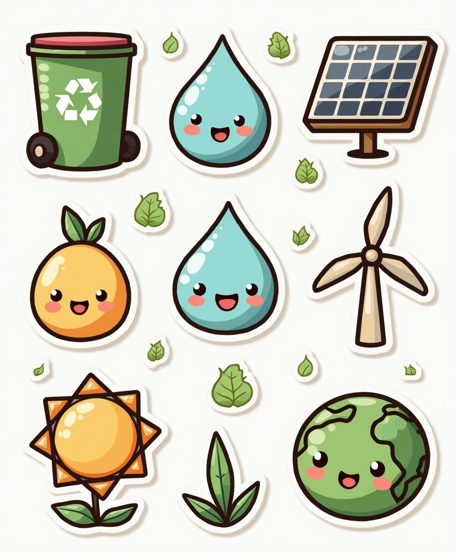 ♻️ Eco-Friendly Icons – A clean and modern sticker sheet collection featuring sustainability, recycling, renewable energy, and conscious living symbols. Perfect for planners, packaging, journals, and awareness campaigns. 🌱