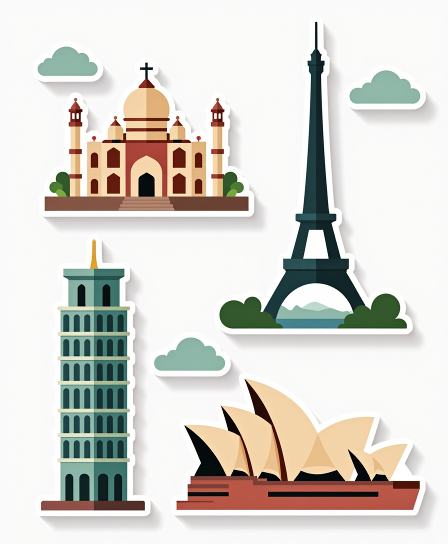 🏛️ Global Landmarks Stickers – Iconic monuments and wonders of the world, beautifully illustrated in unique styles. Perfect for travel lovers, planners, and collectors. 🌍