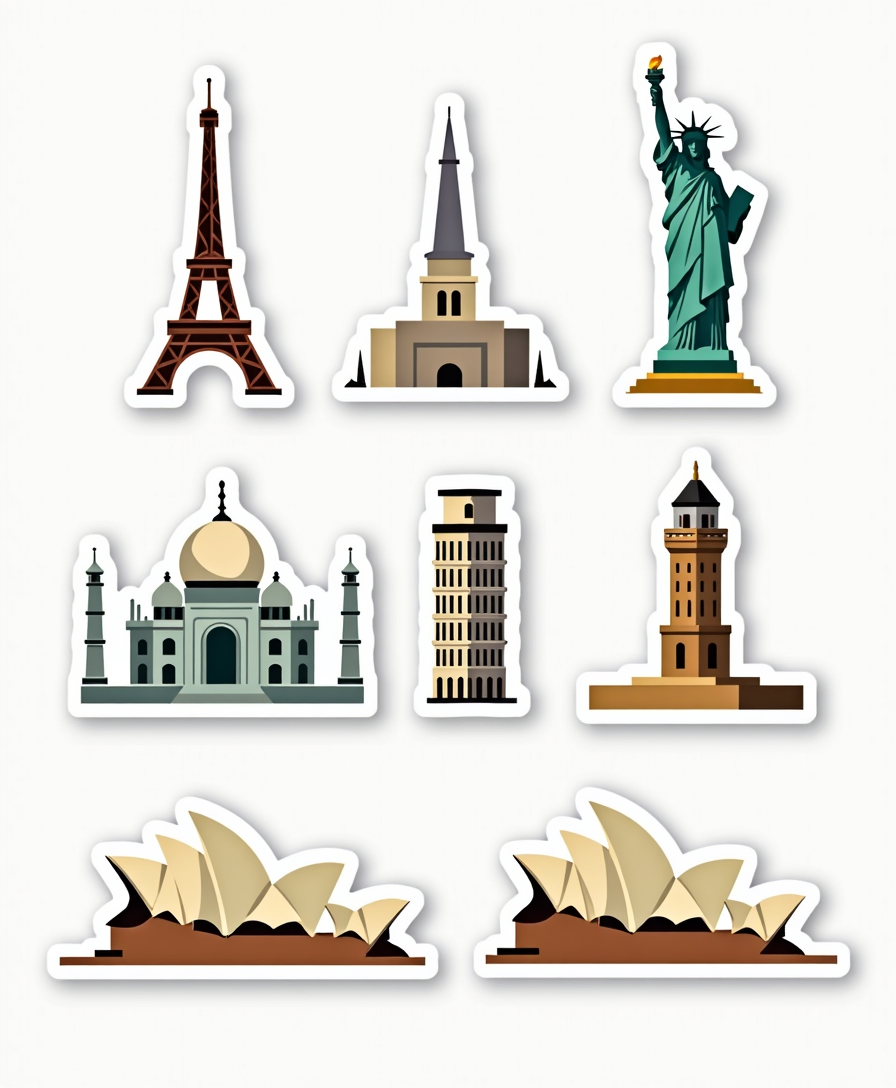 🏛️ Global Landmarks Stickers – Iconic monuments and wonders of the world, beautifully illustrated in unique styles. Perfect for travel lovers, planners, and collectors. 🌍