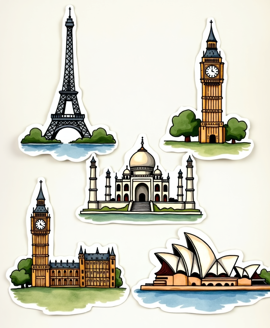 🏛️ Global Landmarks Stickers – Iconic monuments and wonders of the world, beautifully illustrated in unique styles. Perfect for travel lovers, planners, and collectors. 🌍